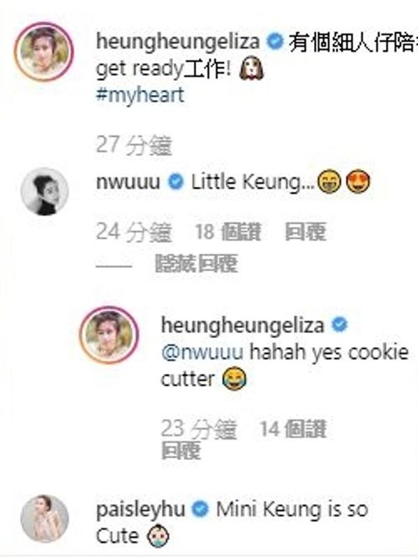 佢幫自己同囝囝加咗個狗耳仔圖案上去,“mini強強”嘴嘟嘟好得意,連胡定欣同胡蓓蔚都留言贊Jacob好得意,而岑麗香就話:“有個小人仔陪我get ready工作!”