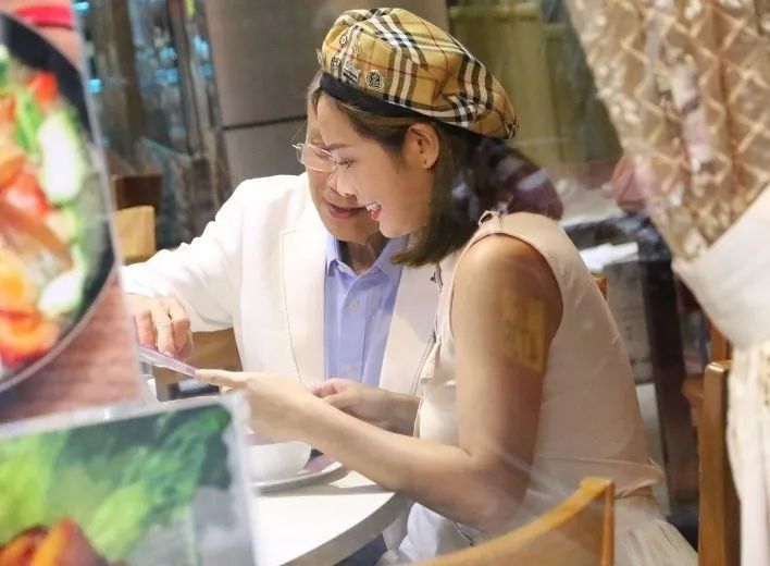 陳芷尤同嗰位老伯一見面就嚟咗一個愛的擁抱,表現相當親密,之後就一齊食飯,佢對老人家亦好照顧,主動斟茶、加餸,仲頭貼頭自拍。