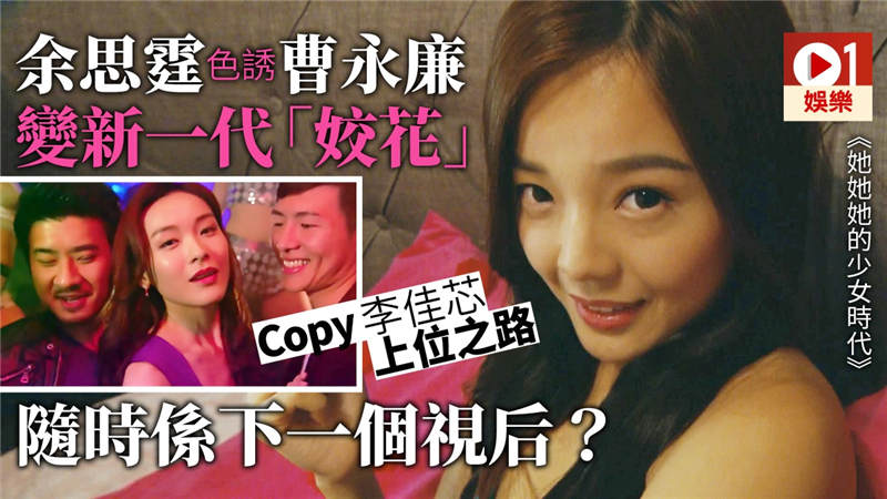 余思霆喺《她她她的少女时代》中更飾演一位鐘意大叔曹永廉嘅僆妹,劇中大玩制服誘惑行“姣花”路線。