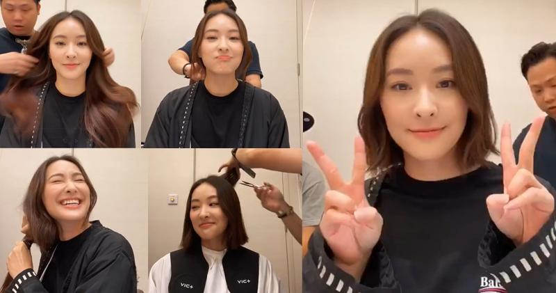 陳瀅尋日喺社交平臺直播自己剪發嘅視頻,最開始佢露出扁嘴表情,之後就忍痛親自剪落第一刀,之後就交由發型師繼續。