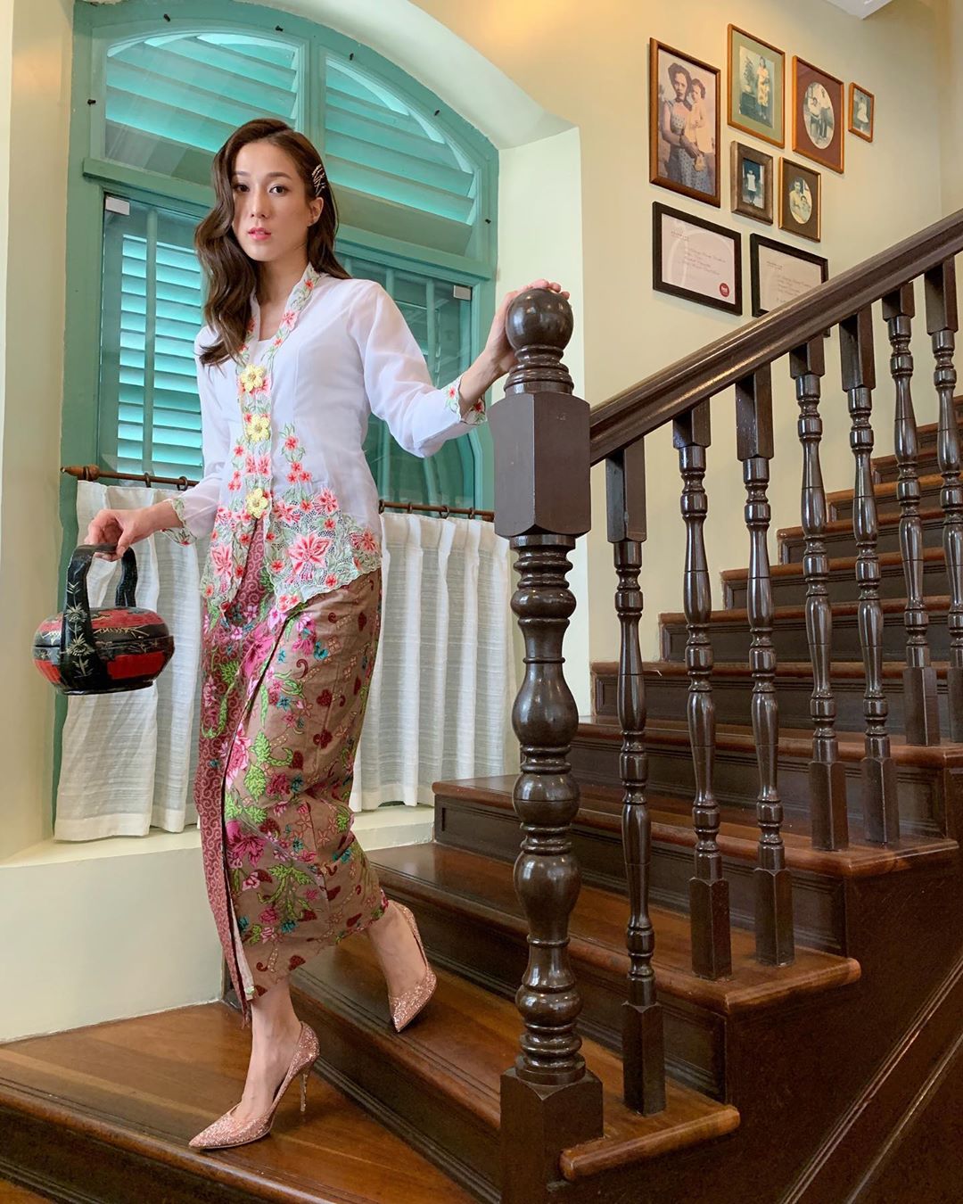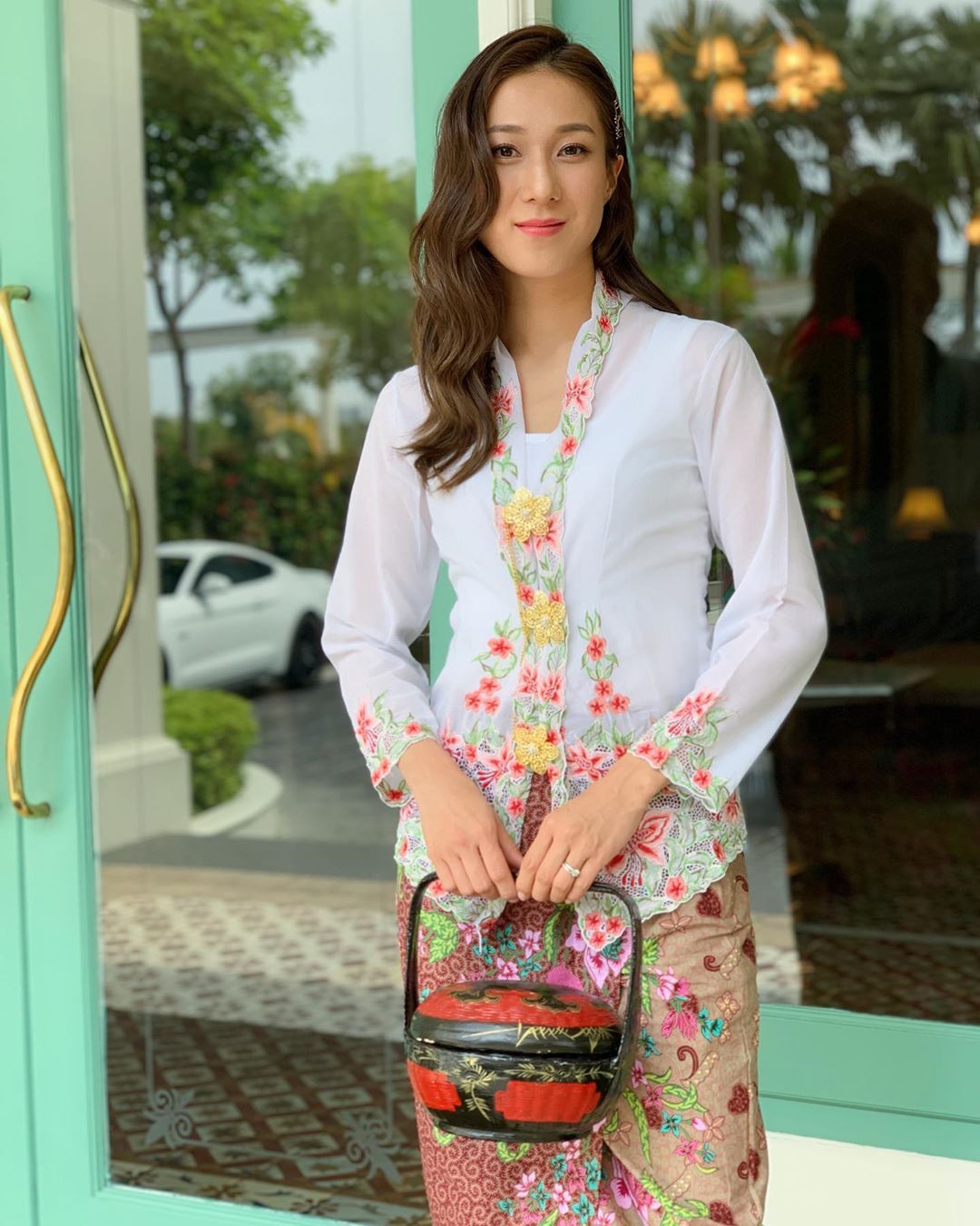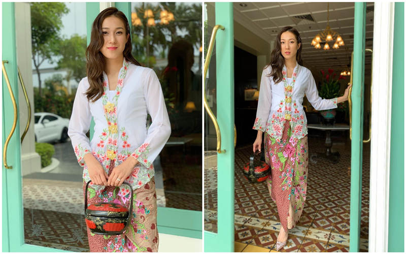 鐘嘉欣雖然已經係兩個細路嘅媽咪,但著上馬來西亞傳統服飾,喺貼身長裙襯托下,身材玲瓏浮凸,網民都留言大贊好靚。