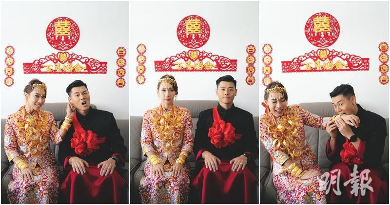 「TVB新聞小花」李旻芳與未婚夫黃耀英今日結婚大好日子,兩人朝早依足傳統著上中式禮服接新娘,黃耀英同兄弟團連過幾關,成功抱得美人歸。