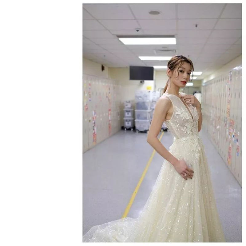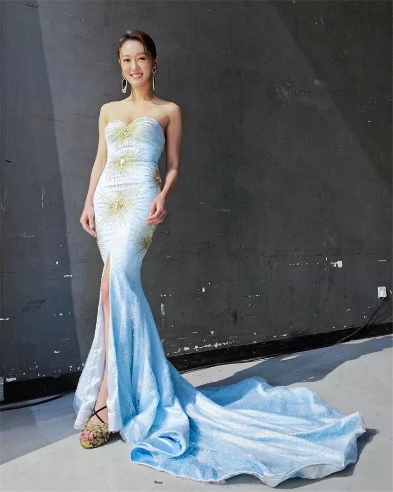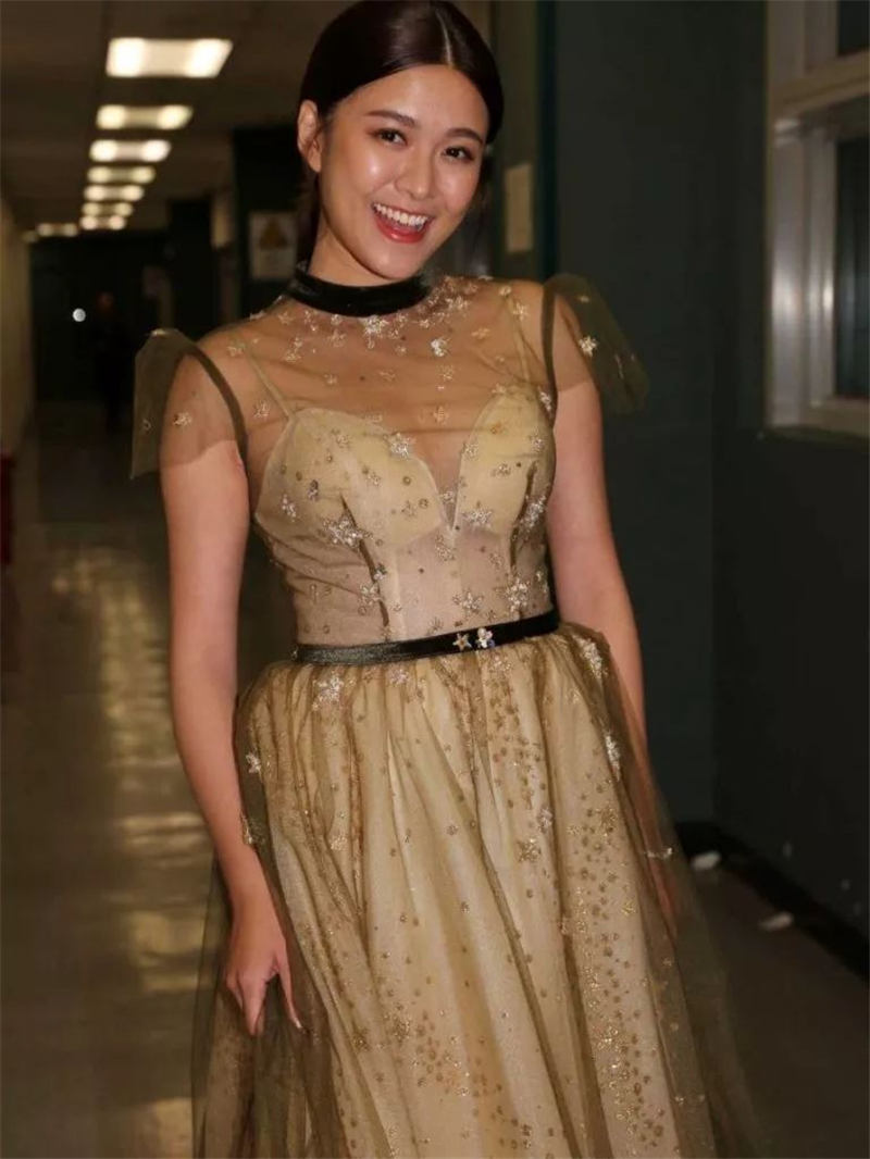 而今年畀評選最美女藝人就係最當中擔任司儀之一嘅何依婷,以一身香檳色露肩長裙現身,造型驚艷!