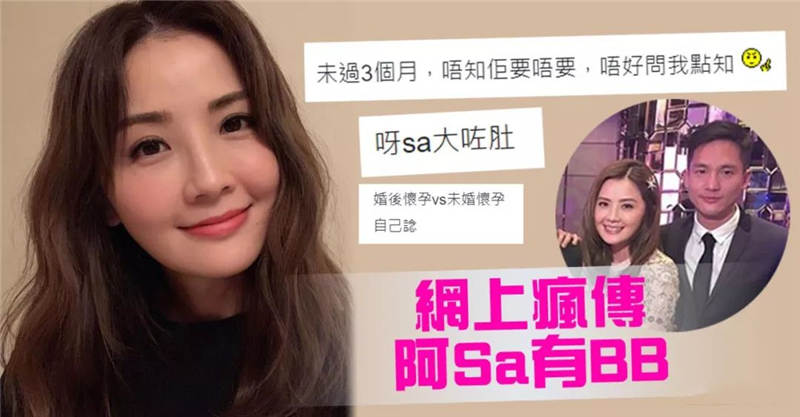 呢排網上盛傳阿Sa「有咗」,為Anthony陀B,但由于未過3個月,根據華人傳統驚BB「小氣」,所以阿Sa未有向外公佈喜訊。