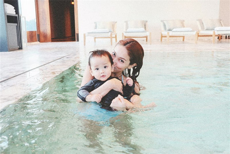 陳凱琳表示仔仔由最初好驚落水,到現時已經「無水不歡」,佢又自誇同老公都係「游水教練」。