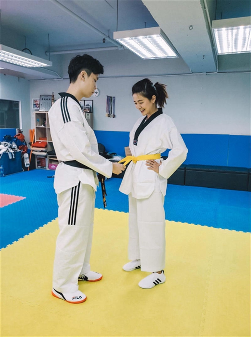 上咗幾節課嘅江嘉敏,宜家已經去到黃帶嘅級數,佢話,學完可以平時練下運動下身體,又可以喺必要時防咸濕佬。