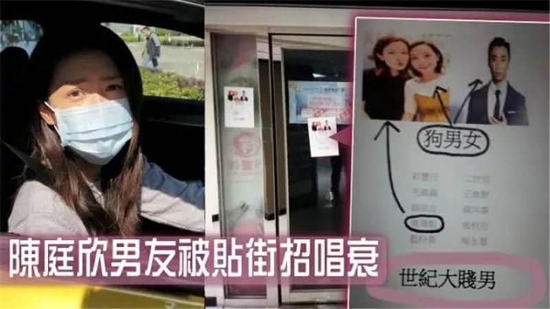 至於街招上有陳庭欣同一女子合照,以及楊振源嘅相,直指呢個女子同楊振源係「狗男女」,又大大隻字寫上「世紀大賤男」,同指楊振源係「二世祖」、「搞朋友、搞同事」。