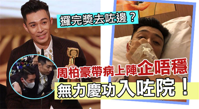 「TVB小生」周柏豪帶病出席臺慶頒獎禮,連奪「最受歡迎電視男角色」、「最受歡迎電視歌曲」,當佢發表完獲獎感言之後,周柏豪即刻由工作人員扶住離開。