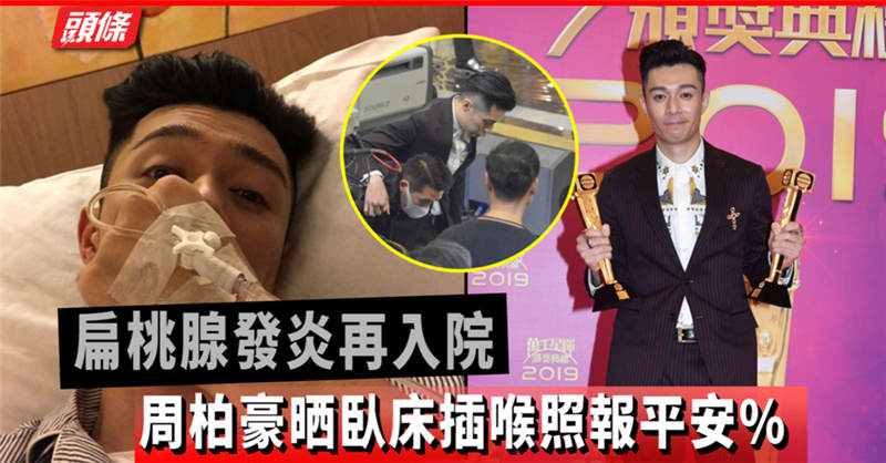 周柏豪今朝喺社交平臺曬咗一張攤喺醫院病床上嘅相,手上仲插咗喉。佢仲留言話:「真係唔好意思,讓大家擔心。尋晚嘅狀態實在好差好差,連企起身嘅氣力都好似冇。」
