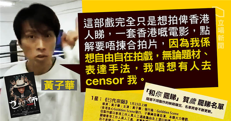 前「TVB小生」黃子華自編自導自演嘅賀歲電影《乜代宗師》準備出得街,但最近有廢青批評黃子華收取巨額片酬,剝削工作人員,同埋令到有啲場景唔夠錢拍,要去深圳拍。