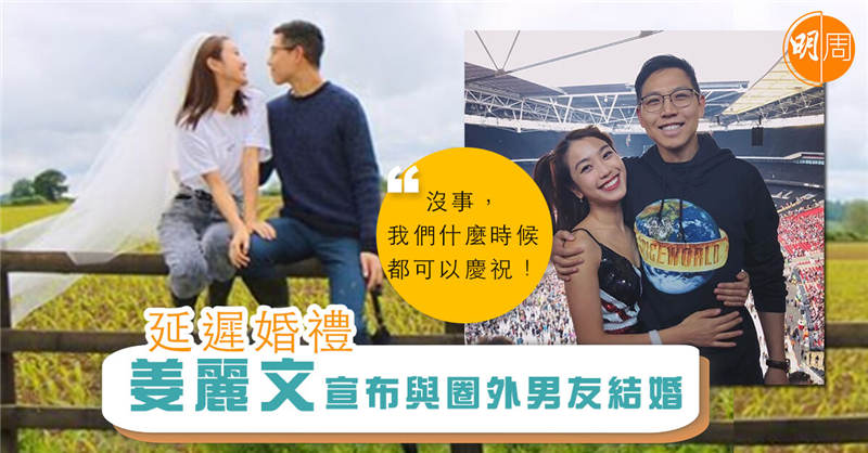 姜麗文喺社交平臺留言表示:「今日本來係兩個人嘅結婚日子,不過因為武漢肺炎,我哋決定延遲婚禮!老公,我愛你,Happy Almost-Wedding Day!」