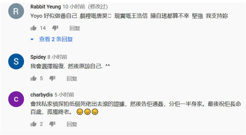 網民不斷大贊佢哋嘅演技之外,仲講劇中嘅黃智賢係渣男,如果佢唔出軌陳自瑤點會咁心痛,都唔會搵其他男人發生關係。唔理點樣大家點鬧都好,只不過係劇情需要啫。