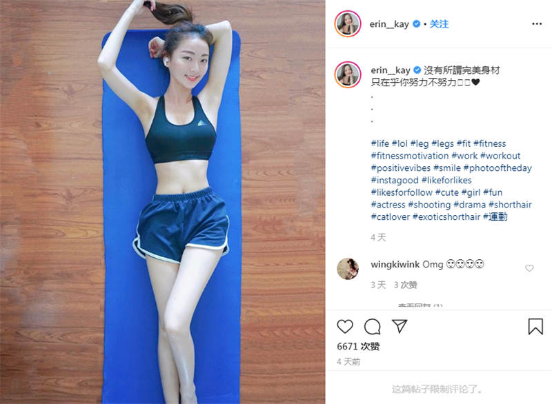 前港姐王卓淇經常喺社交平臺曬靚相大派福利,憑住Fit爆身形深受粉絲歡迎,呢排唔少人都少出街,王卓淇亦唔例外,日前佢喺社交平臺曬出攤喺瑜伽墊上嘅相,仲留言話:「冇所謂完美身材,只志在你努力唔努力。」