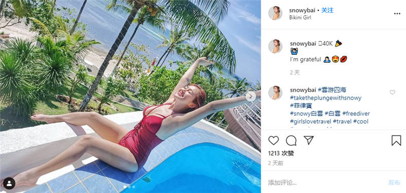 「TVB宅男女神」白蕓憑借出眾嘅身材深受網友喜愛,社交平臺粉絲數量亦突破4萬,佢梗係要賀一賀兼答謝大家嘅支持,佢仲留言話:「4萬!感激。」