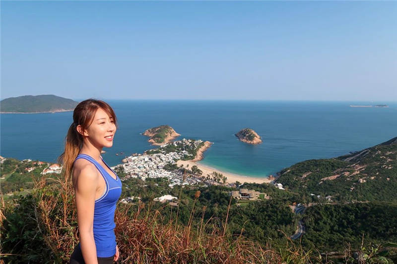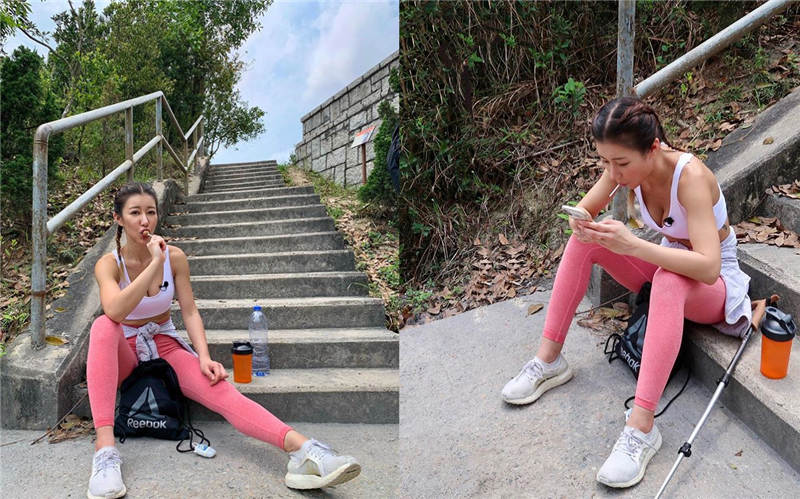 見到陳婉衡著白色運動Bra同粉色健身褲,扎住辮仔,全副武裝爬山,可以去到戶外呼吸新鮮空氣的確身心舒暢,不過陳婉衡就算漏咗一樣嘢,噉就係防曬!