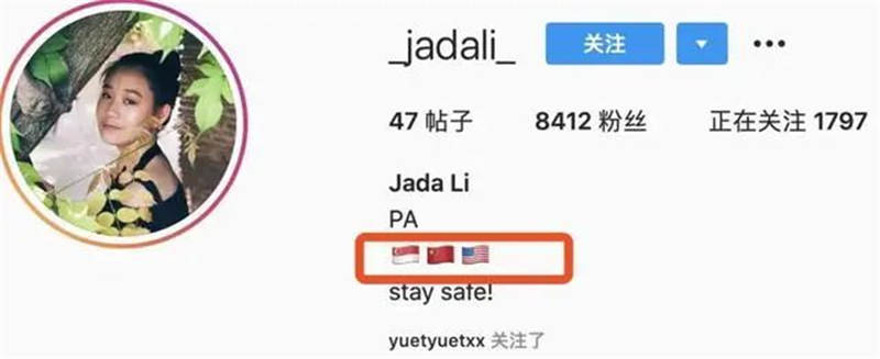 佢哋今年分別就20歲同就17歲,佢哋喺美國讀書,擁有新加坡國籍,但本身又係中國人,所以Jada個人社交平臺上曬出咗三面國旗。