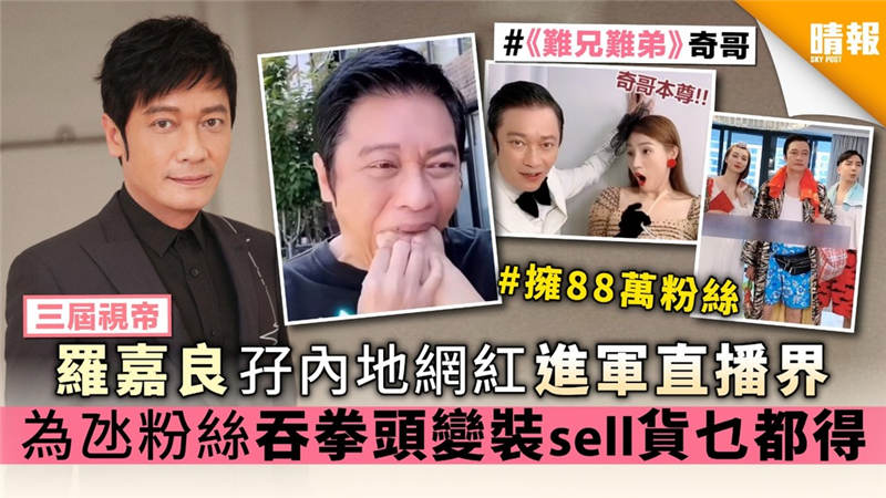 呢排,羅嘉良開始玩直播,而仲有高達88萬粉絲,佢分享日常生活之外仲識表演各種奇技,有網民大嘆昔日TVB三屆視帝竟然要淪落到做網紅搵錢,有啲自貶身價;不過都有網民就覺得係潮流趨勢,無法抵擋。