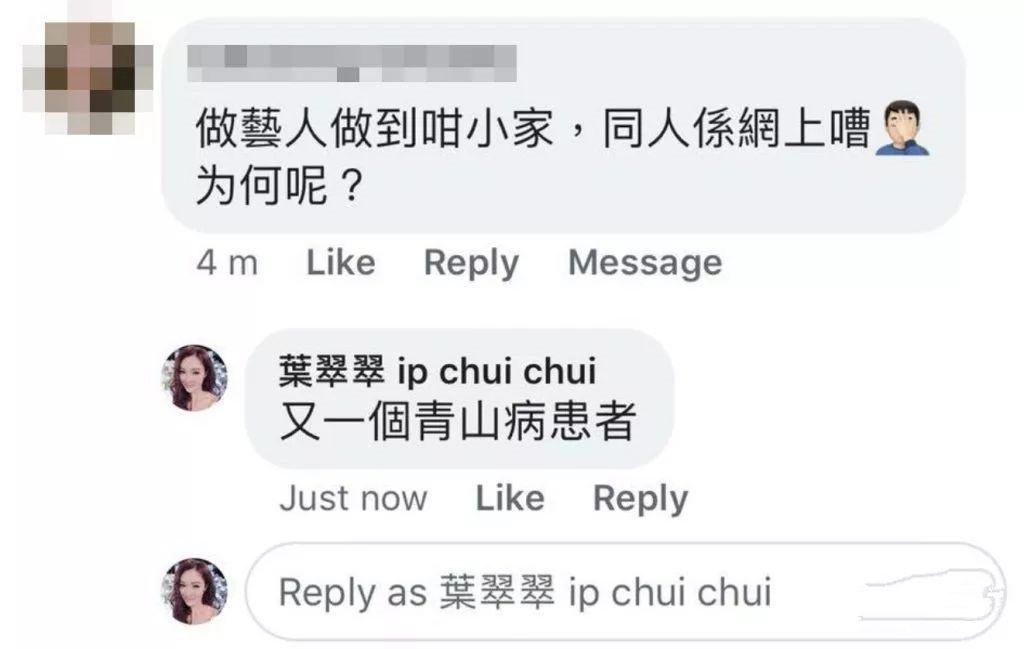 葉翠翠鬧爆:好少見咁低b留言