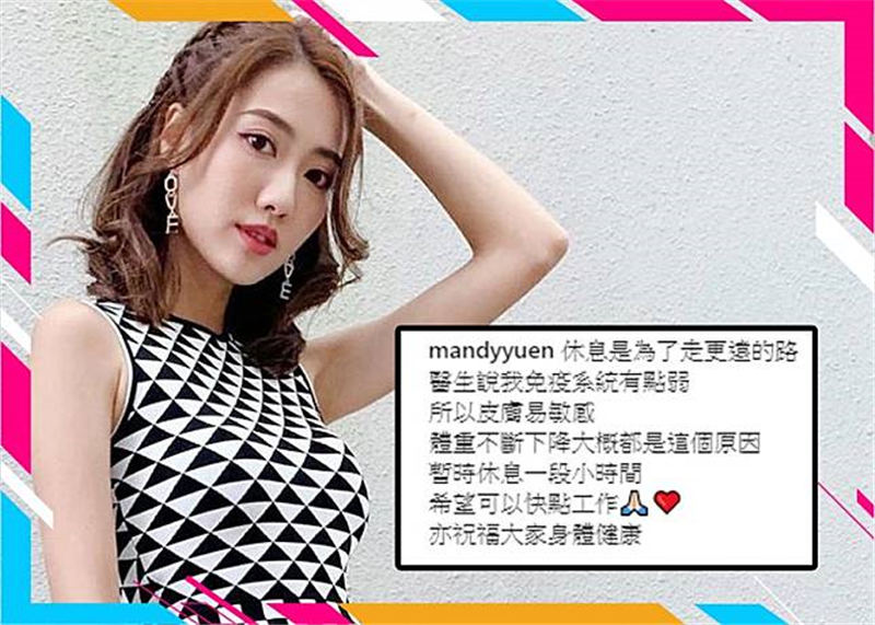 但日前阮嘉敏卻喺社交平臺留言話:「休息係為咗行更遠嘅路,醫生話我免疫系統有啲弱,所以暫時休息一段小時間,希望可以快啲工作,亦祝福大家身體健康。」,唔少網民都叫佢保重身體,以及猜測佢要暫別幕前工作。