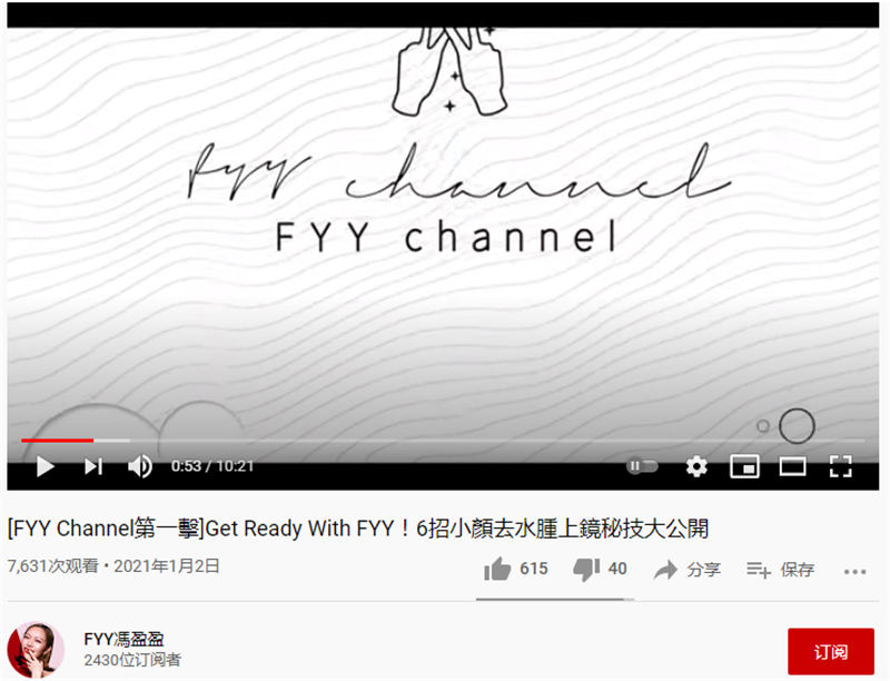 呢日,馮盈盈仲喺社交平臺話:「我嘅Youtube頻道已經開通,仲上載了第一條影片,但拍出來嘅效果香艷到自己都唔敢睇,如果大家有時間就望望啦。」