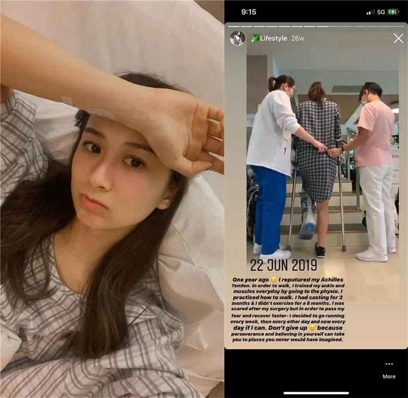 黃婉恩更自爆原來2年前同樣有斷筋「經驗」,呢次就右腳,可以話平衡番!左腳宜家有2吋疤痕,但呢個位應該冇乜人留意到。