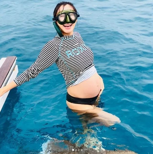 李美慧喺社交網話:「最近肚肚真系開始大咗,肚開始有撕裂的感覺啦,而且食少少嘢就有頂住的感覺,所以好早就要開始搽去大肚紋的Cream!現在我每日下午都會去浮潛,買一大袋面包去海里喂魚魚食,佢哋唔怕我,食得好開心呀!」