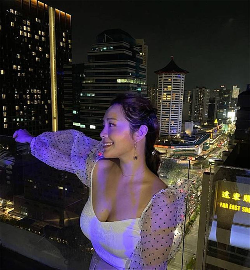 呢排天氣潮濕兼落雨,連個太陽都少見,身喺新加坡嘅前港姐陳芷尤,好似冇呢方面嘅煩惱,見到佢著住低胸衫欣賞夜景,大玩高抄畀大家睇到條「事業線」同埋34C「咪咪」。