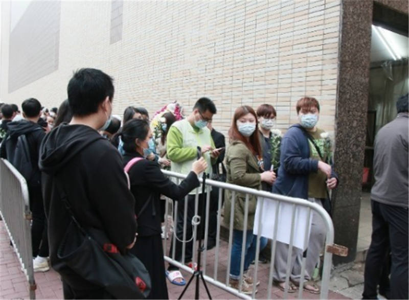 公祭喺晚上6至7點嘅時候,開放畀市民到場悼念,大概4點嗰陣就有過百擁躉排隊,唔少人手持白菊花,而由於疫情關係,每位擁躉入場之前都要量溫同以消毒搓手液消毒對手。