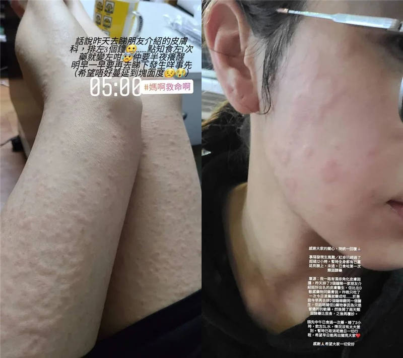 日前,利穎怡突然喺社交平臺曬出一張生得滿密質質紅疹,睇落有幾百處。而佢之前擔心濕疹蔓延到面上,最後都畀自己講中。