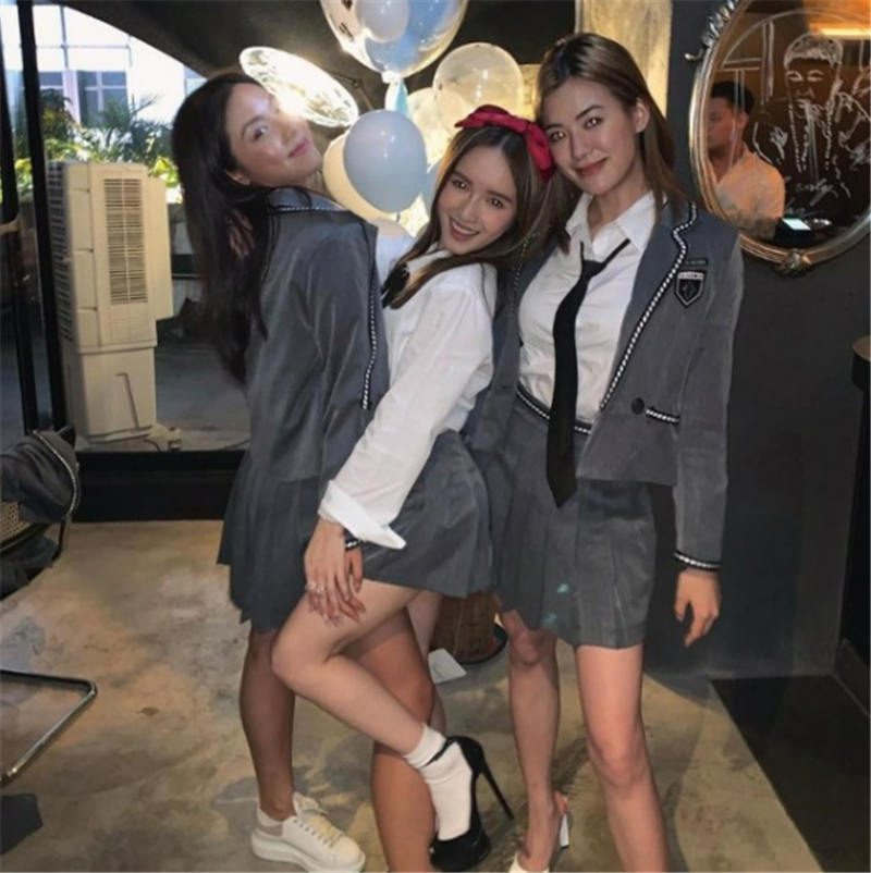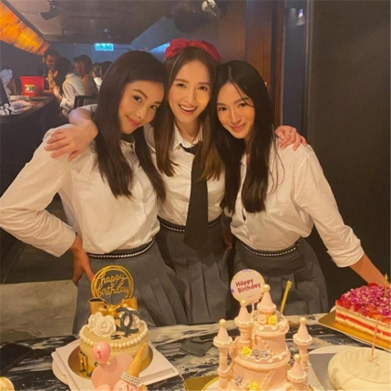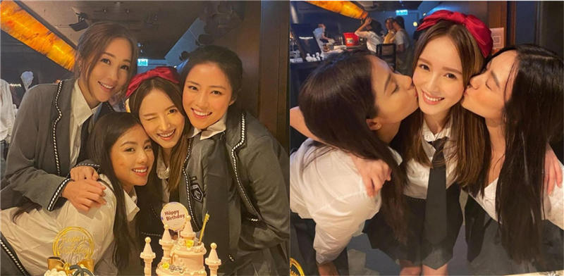 而生日會設定咗以校服為指定服裝,鄺潔楹、劉穎鏇、伍樂怡、魏韻姿化身學生妹亮相,好似出席畢業派對噉樣,相當養眼。