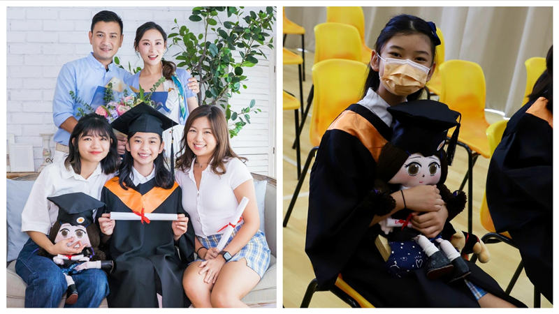 身為「最強繼母」嘅楊卓娜,一家人相處得相當融洽,上個月親生女楊舒然小學畢業典禮,楊卓娜就自制畢業公仔,一家人仲去到影樓拍攝畢業照兼曬全家福。