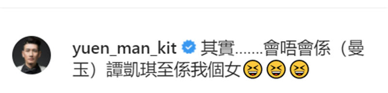 而袁文杰亦有喺社交平臺大曬同譚凱琪嘅合照,仲賣口乖讚譚凱琪表面青春,似個女多過舊情人:「其實,會唔會係曼玉譚凱琪先係我個女????」