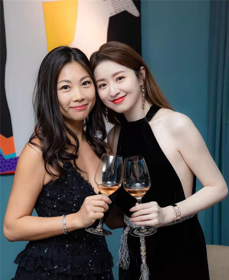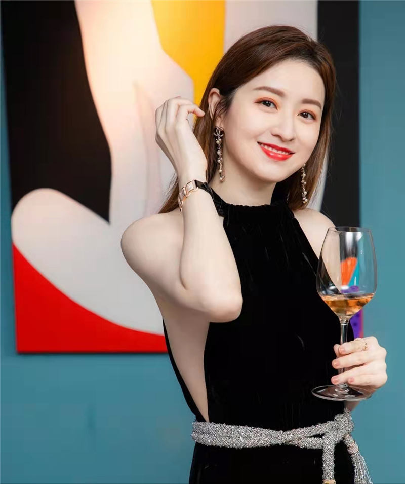 徐淑敏身穿黑色連衣裙,左右兩邊開叉至腰間,完全冇贅肉,企喺朋友嘅身邊更加顯得皮膚好似牛奶般白到發光,相當滑捋捋,女人味十足!