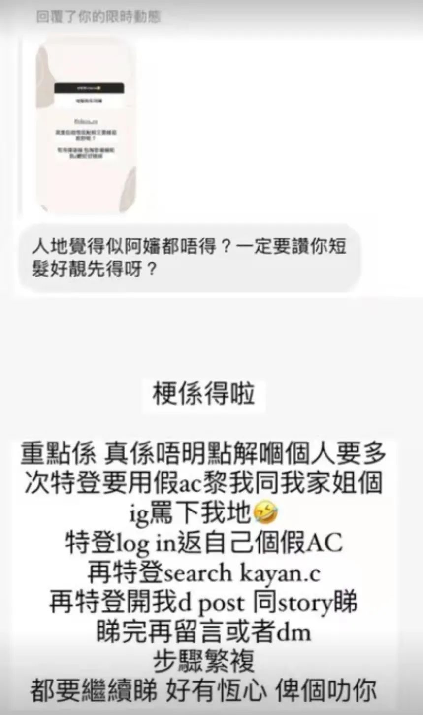 正因為蔡嘉欣呢個留言,仲惹咗其他網友嘅反駁,「人哋覺得你似阿嬸唔得乜,唔通係一定要讚你個新髮型靚先得呀?」