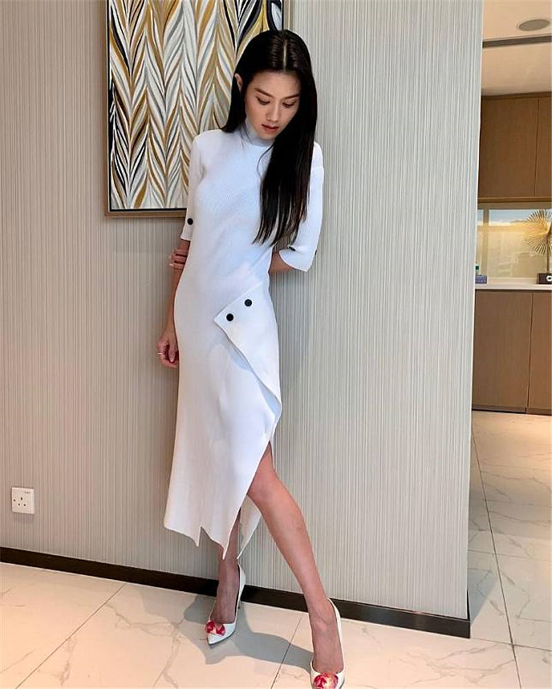 不過呢幾年周秀娜除咗收起性感,玩起「封胸」之外,呢日佢仲喺社交平臺玩起自拍,見到佢着住條白色樽領長裙,成個人都瘦晒,變咗做「周瘦娜」,身材大縮水!