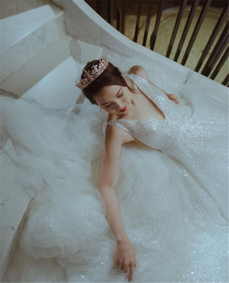 其實鄺美璇早喺7月嗰陣,曬出過喺五星級酒店拍攝嘅婚紗相,見到佢戴上皇冠十足十女皇一樣,睇嚟未來老公錫到佢燶!