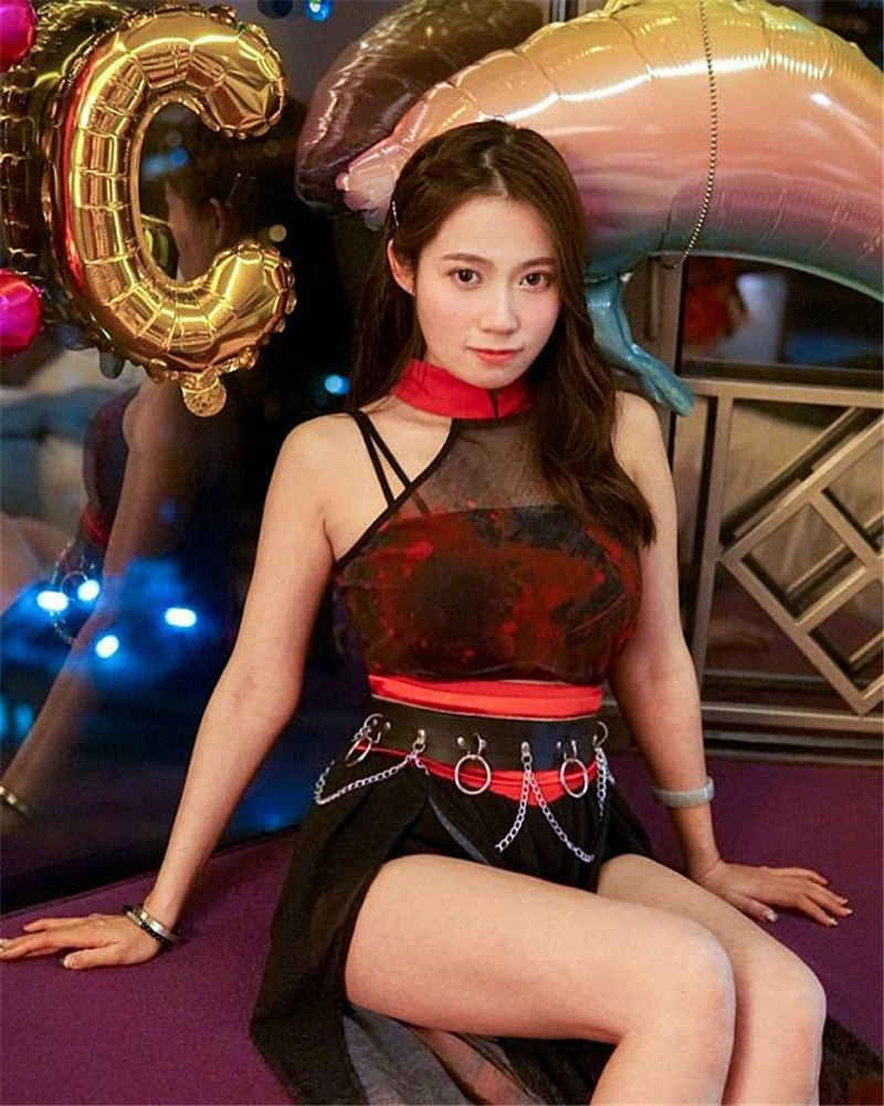見到波波以一身中國風打扮示人,著住紅黑色兩截裙,上身薄紗大玩透視誘惑,透出招牌36E導彈級巨胸,若隱若現誘惑死人。