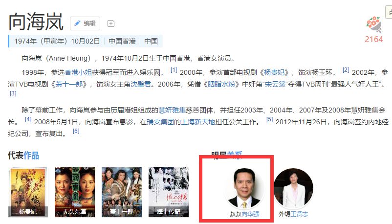 當年向海嵐就系帶住個姓,所以一直被傳系向華強嘅侄女,但后來已經畀向海嵐本人否認。