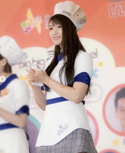 邱晴著起藍白連身百折裙,成個美少女戰士一樣。配搭一對藍色長襪,令身型更騷高挑,運動風之余,亦好青春可愛,后生就系無敵!