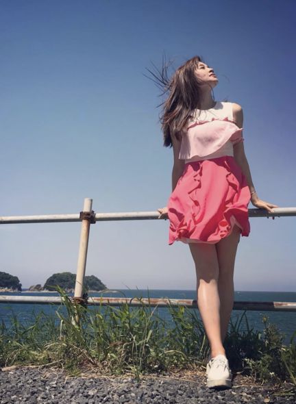 年紀細嘅優勢就可以成日做青春僆妹嘅打扮。灰色不規則裙配搭中袖恤衫,加埋簡單嘅涼鞋,清新自然,休閑造型都可以美美嘅。