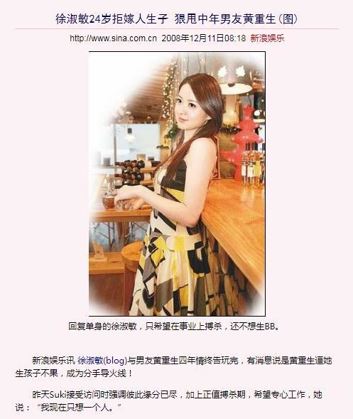 但兩人拍拖四年后都系以分手告終,媒體爆料分手原因在于男方對徐淑敏進行逼婚生仔,但徐淑敏認為自己得24歲,只系希望可以喺事業上闖出一片天,於是忍痛分手。