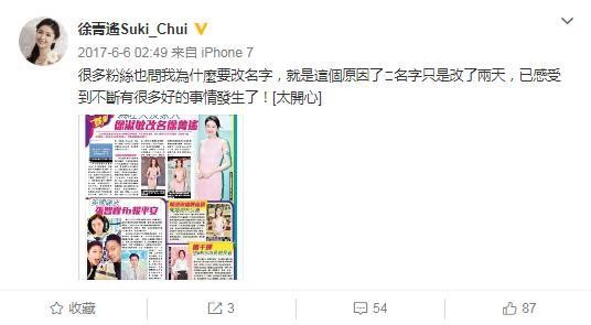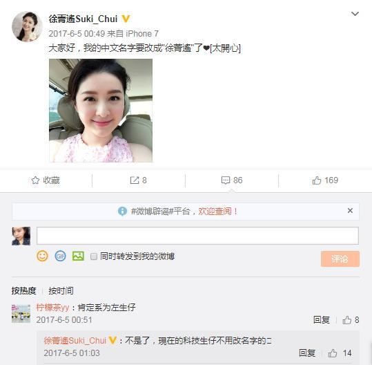 宣布改名嗰條微博入面,有網友說道:「梗系為咗生子。”佢回復道:「而家都系科學產產子,唔駛改名。”