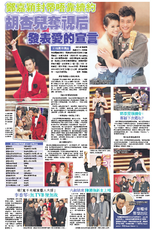 2011年,胡杏兒攞視后嘅時候,更加系喊住喺臺上深情告白:“我知道自己好多缺點啫,好難頂,但系你都好多缺點啫,你都好難頂。我希望,我哋路頂住大家。”